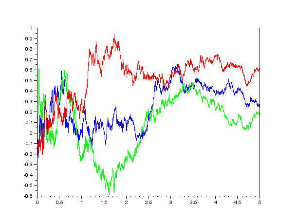 - Definujte v Scilabe funkciu, ktorá vygeneruje vektor s realizáciou OU procesu so zadanou začitočnou hodnotou a zadanými parametrami procesu a časového delenia.